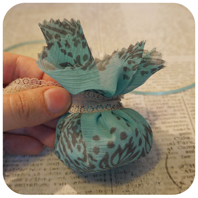 Wrap your ribbon/lace around your lavender pouch ...